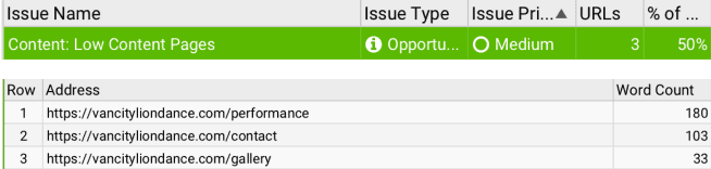 Pages with low content lack sufficient detail and descriptive information.