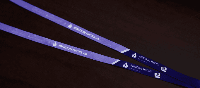 The repeating Ignition Hacks logo and wordmark along the length of the lanyard reinforce brand recognition.