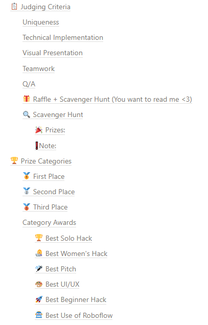 Notion’s database and page structure let us create a rich but navigable layout, ideal for presenting complex hackathon information in a user-friendly way.