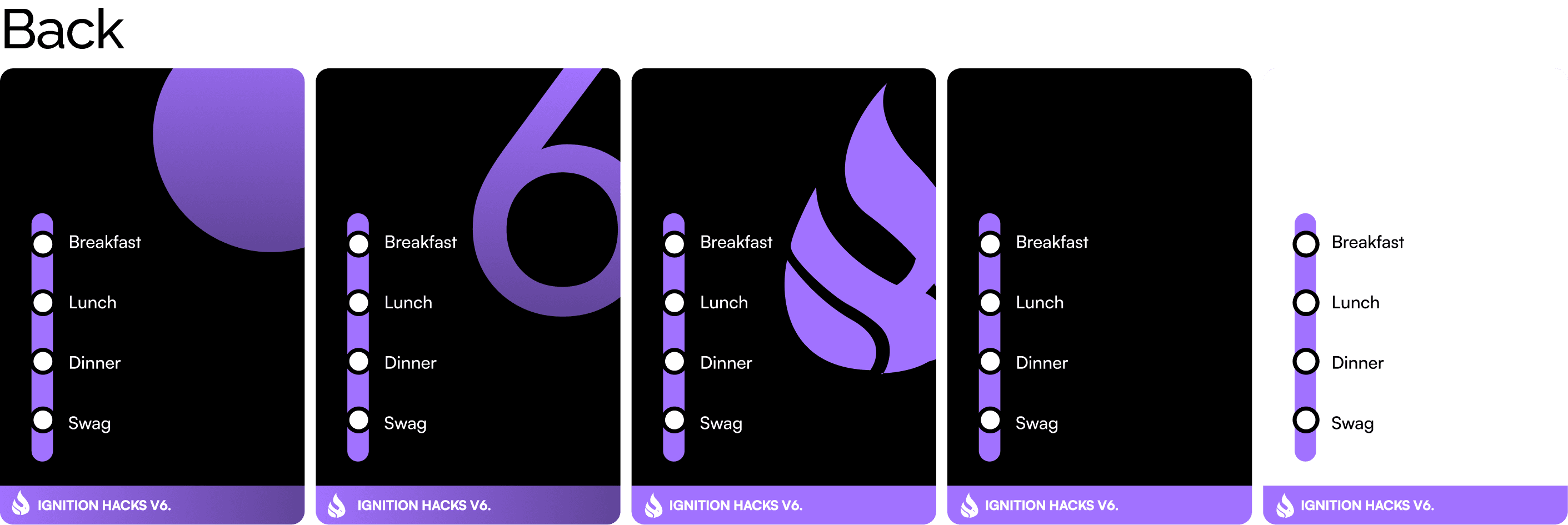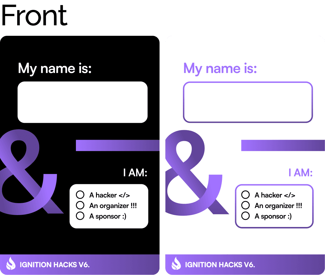 Essential functional component of the event, serving both as identification and tool for tracking meal and swag distribution throughout the hackathon.