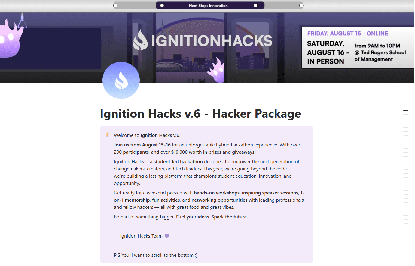 From the redesigned website to the improved information hub and branded merch, every decision contributed to helping participants feel supported and connected. Moving into Ignition Hacks v7, I hope to build on this foundation by refining the brand system further, improving digital clarity, and continuing to create moments that make participants feel at home and part of a community.