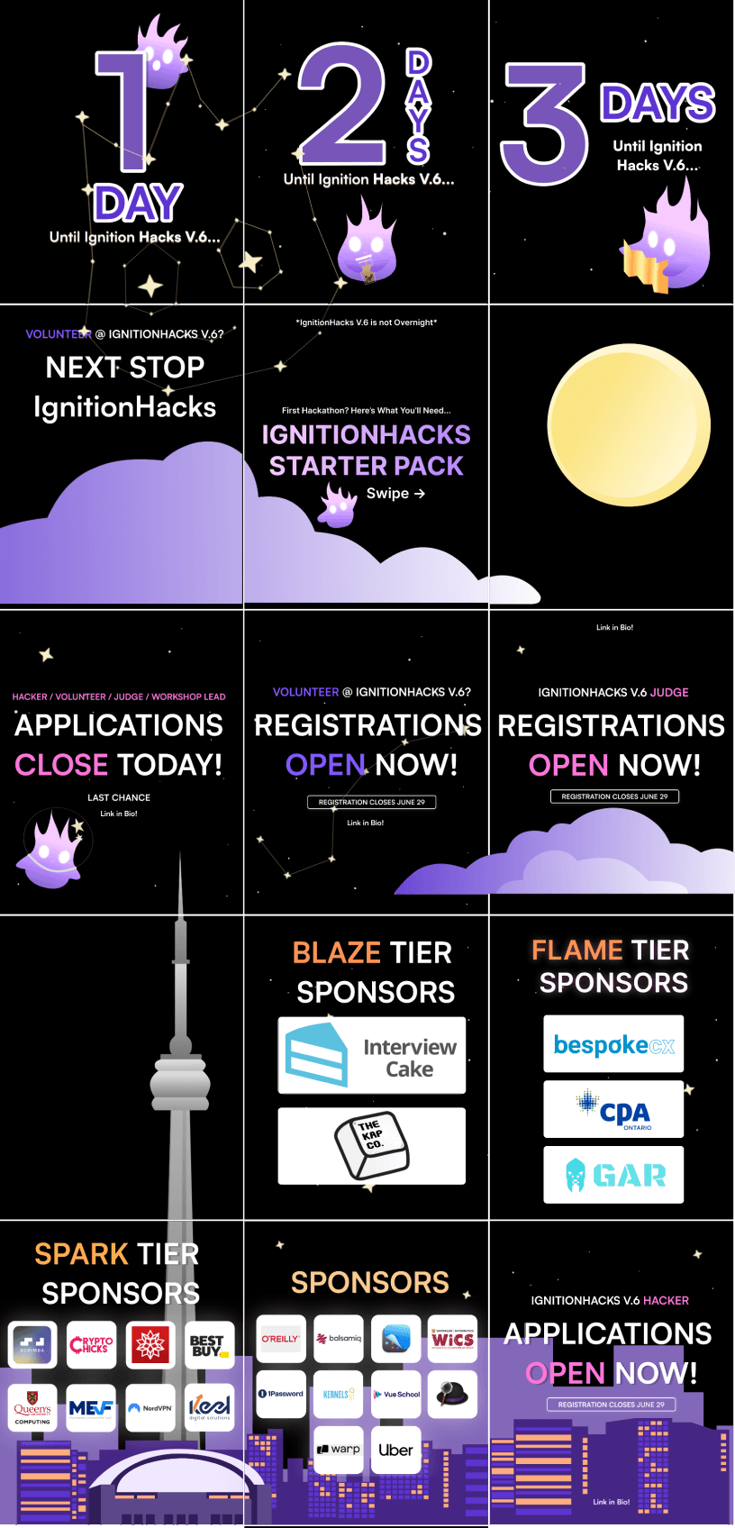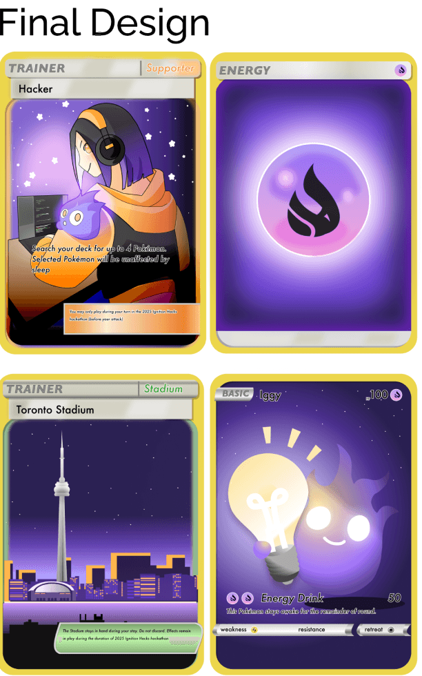 With so many hackathons happening across Canada, we wanted Ignition Hacks to stand out as a distinctly Toronto-based experience, youth-led, community-first, and future-focused. Our branding isn’t just aesthetic, it’s how we communicate our values of accessibility, innovation, and inclusion at every touchpoint. Whether it’s a social media post that sparks curiosity, a digital schedule that’s easy to follow, or signage that helps someone navigate their first hackathon with confidence, branding shapes how participants feel supported from start to finish. It tells our attendees that we care, not just about tech, but about them.